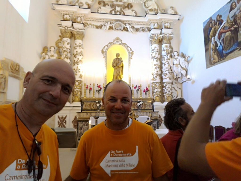 da Avola a Donnalucata per il CAMMINO DELLA MADONNA DELLE MILIZIE da mercoledì 18 a domenica 22 maggio 2022 Nel 2022 la nona edizione del CAMMINO DELLA MADONNA DELLE MILIZIE si realizzerà nei giorni 18-19-20-21 e 22 maggio 2022 come sempre con il colore arancione delle nostre magliette rigorosamente senza quota di adesione e senza costi inutili per i pellegrini partecipanti. Aderire con un messaggio a madonnamilizie@libreriaeditriceurso.com Si tratta di un cammino esclusivamente mariano che passa dalla chiesetta della Madonna delle Grazie di Avola Antica, dal Santuario della Madonna della Scala in territorio di Noto, per proseguire, poi, verso Testa dell’Acqua, Rosolini, Modica, Scicli e, concludersi, dopo aver raggiunto Donnalucata, con la visita del Santuario della Madonna delle Milizie, che fu costruito, secondo