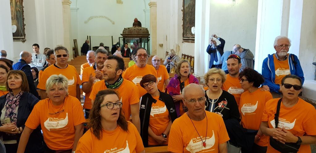 da Avola a Donnalucata per il CAMMINO DELLA MADONNA DELLE MILIZIE da mercoledì 18 a domenica 22 maggio 2022 Nel 2022 la nona edizione del CAMMINO DELLA MADONNA DELLE MILIZIE si realizzerà nei giorni 18-19-20-21 e 22 maggio 2022 come sempre con il colore arancione delle nostre magliette rigorosamente senza quota di adesione e senza costi inutili per i pellegrini partecipanti. Aderire con un messaggio a madonnamilizie@libreriaeditriceurso.com Si tratta di un cammino esclusivamente mariano che passa dalla chiesetta della Madonna delle Grazie di Avola Antica, dal Santuario della Madonna della Scala in territorio di Noto, per proseguire, poi, verso Testa dell’Acqua, Rosolini, Modica, Scicli e, concludersi, dopo aver raggiunto Donnalucata, con la visita del Santuario della Madonna delle Milizie, che fu costruito, secondo