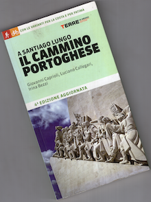 ![]() GIOVANNI CAPRIOLI – LUCIANO CALLEGARI – IRINA BEZZI Il cammino portoghese, Terre Di Mezzo, Milano 2011, formato cm 12x21 con illustrazioni, pagine 264, € 19,00 – ISBN 9788861894525 [www.ebay.it] In cammino da Lisbona a Santiago de Compostela attraverso territori dai mille volti: cittadine pittoresche come Tomar, Coimbra e Pontevedra, sentieri immersi nei boschi e nei vigneti, il santuario di Fatima, meta di pellegrini da tutto il mondo, le chiese barocche di Porto. Chi ama l'oceano potrà scoprire la Senda Litoral e la Variante Espiritual, per camminare lungo le spiagge sabbiose del Portogallo e le coste frastagliate della Galizia. Con tutte le informazioni utili per il viaggio: come prepararsi, cosa mettere nello zaino, quando partire, la descrizione del percorso, le mappe dettagliate, le altimetrie, i dislivelli, i chilometraggi progressivi, le ospitalità e i luoghi da non perdere. Inoltre tutte le varianti adatte alla bicicletta. |